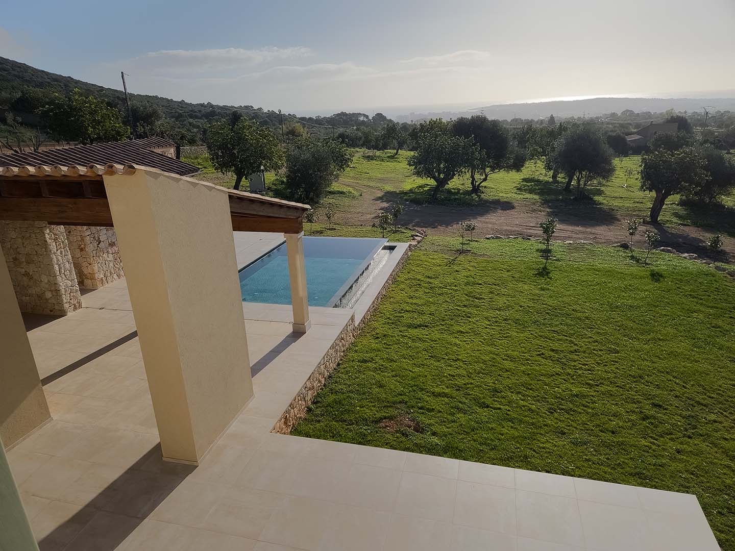Der Infinity-Pool verschmilzt scheinbar mit dem Horizont und bietet einen atemberaubenden Blick auf das umliegende Grün und das in der Ferne liegende azurblaue Mittelmeer. Er ist groß genug, um Ihre morgendlichen Bahnen zu ziehen, und gleichzeitig der perfekte Ort, um sich an heißen Tagen abzukühlen oder einfach nur die wunderschöne Aussicht zu genießen.